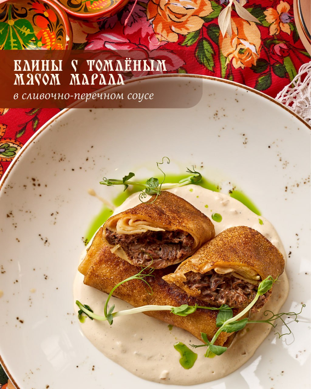 С 16 по 22 февраля нас приглашают на румяные блины с щедрой начинкой — от классических с творогом, до эксклюзивных с томлёным мясом марала.