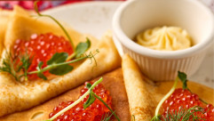 Для любителей добавить в блины побольше начинки в Сандунах готовят дюжину блинов. А что к ним добавить, вы выбираете сами